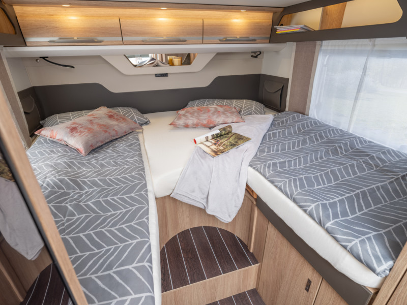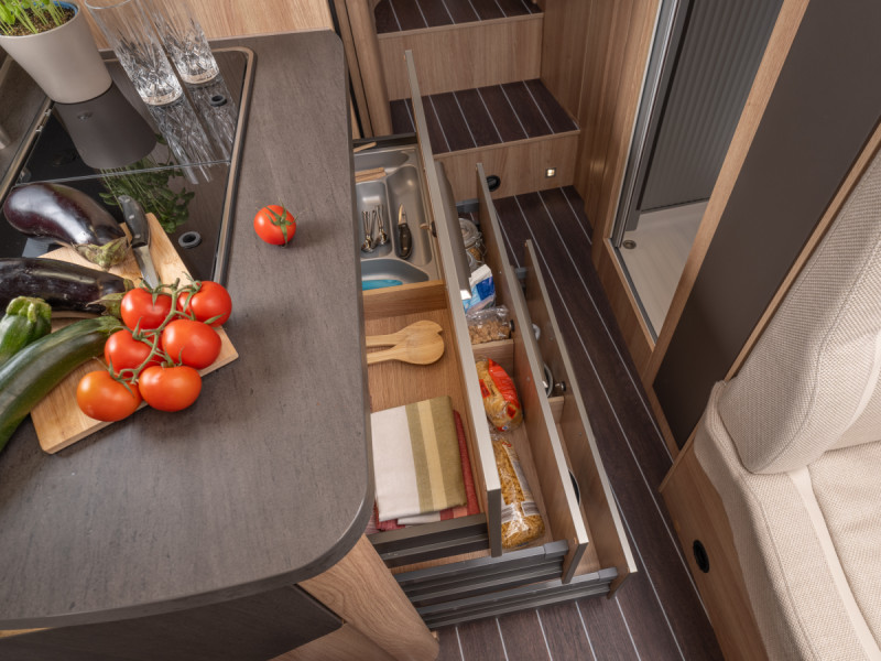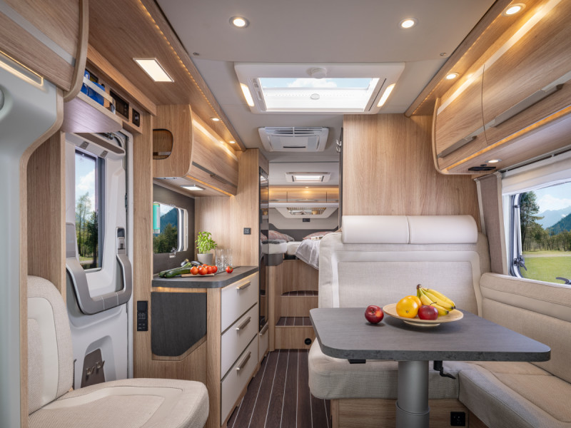 Toppmodern teknik möter omfattande utrustning. Den innovativa FoldXpand-konstruktionen i bakväggen och den välplanerade inredningen skapar ett luftigt bostadsutrymme.
